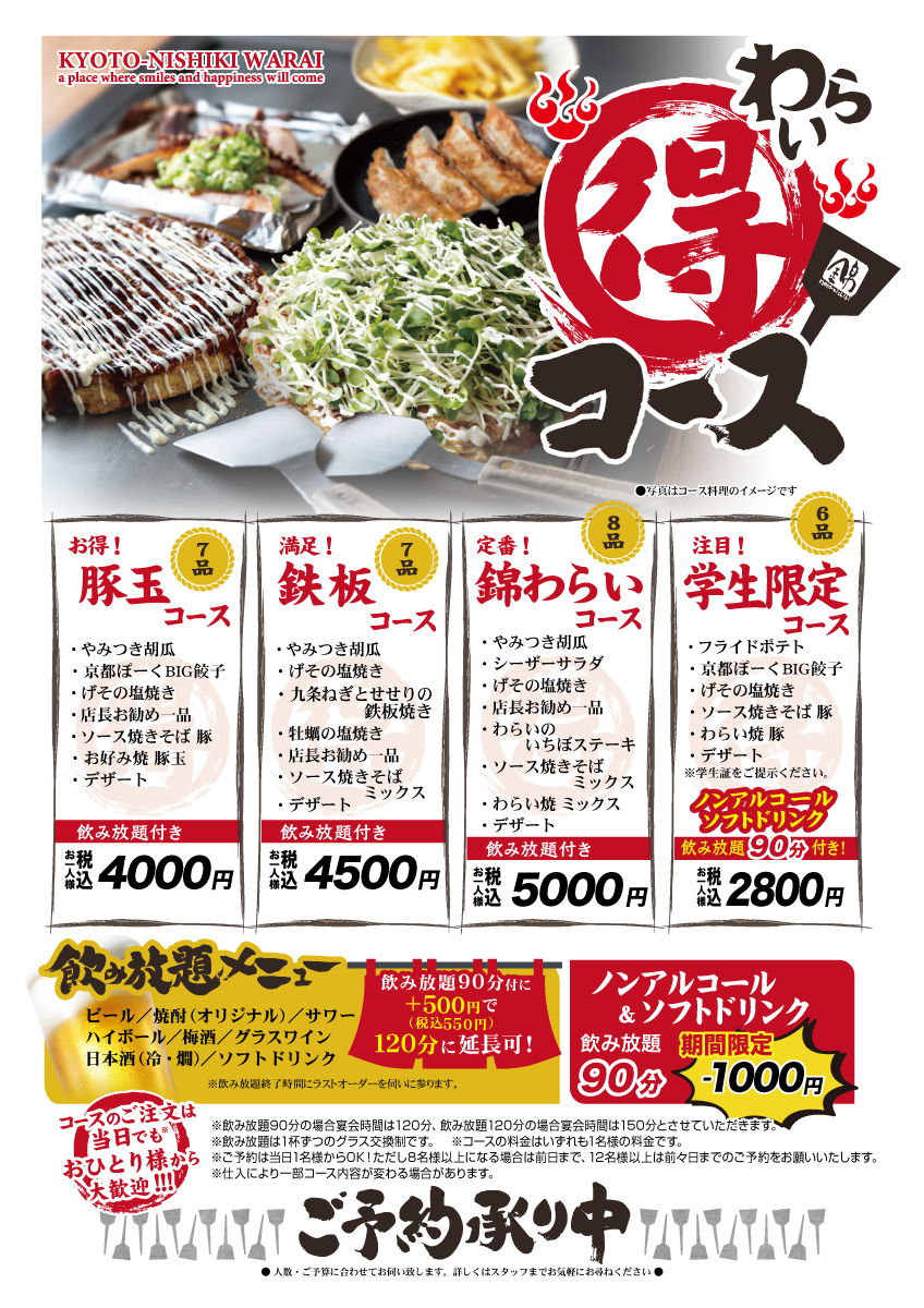 ・ご宴会のお時間は120分とさせて頂きます。(飲み放題90分)